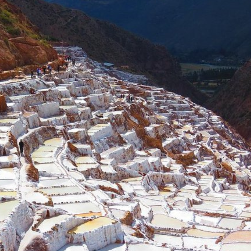 Admira el paisaje blanco en terrazas, aprende sobre la técnica ancestral de evaporación solar y lleva contigo recuerdos inolvidables y productos artesanales de sal natural.